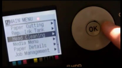 Next, takes some window cleaner (e.g. Windex) and spray it on a piece of paper towel, then clean the ribbon that sits behind the ink cartridge tray. The ribbon is typically white in color.